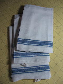I needed something blue and white for a raffle basket at my son's school. I ran across these tea towels at Joann's and they were just begging for some embellishment.